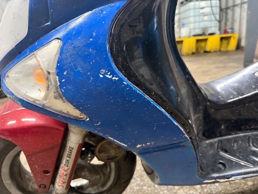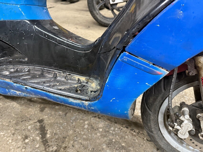 Rear light, o/s rear plastics, o/s front plastics, no mirrors, n/s front plastics, o/s front mudguard, turns over but dose not start, general wear and tear.