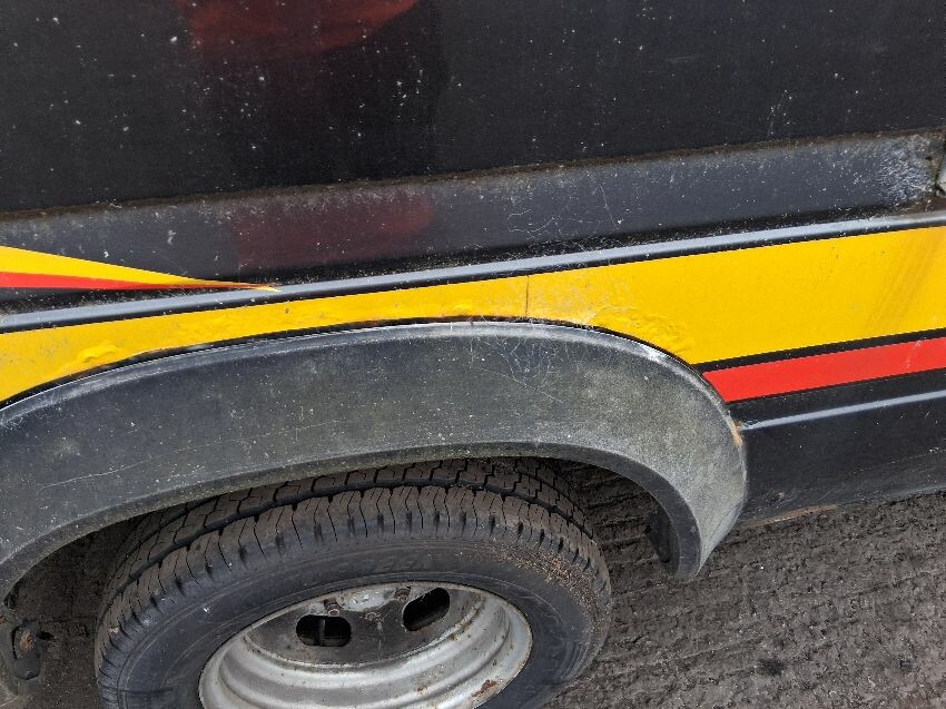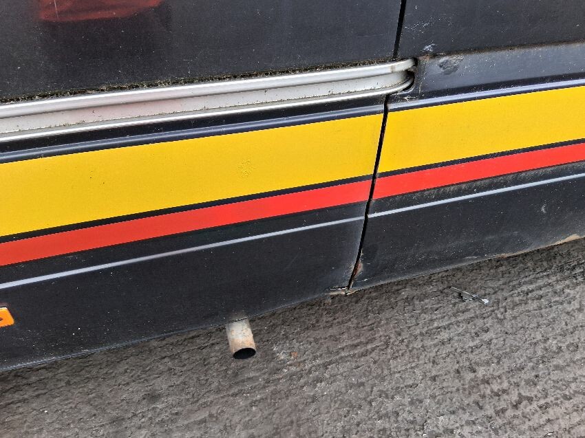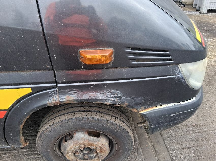 Mileage in km, handbrake sticking on, been painted, rust visible around van, boot lid, o/s/r light, o/s quarter, o/s doors, o/s mirror, o/s wing, front bumper, bonnet, n/s wing, n/s mirror, n/s door, n/s panel, general wear and tear and scratches.