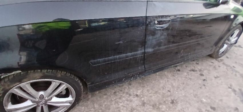 Front bumper, front grill, bonnet, n/s wing mirror, n/s door, n/s rear quarter, rear bumper, o/s rear quarter, o/s door, o/s wing mirror, o/s front wing, scuffs and scratches all over, general wear and tear for age