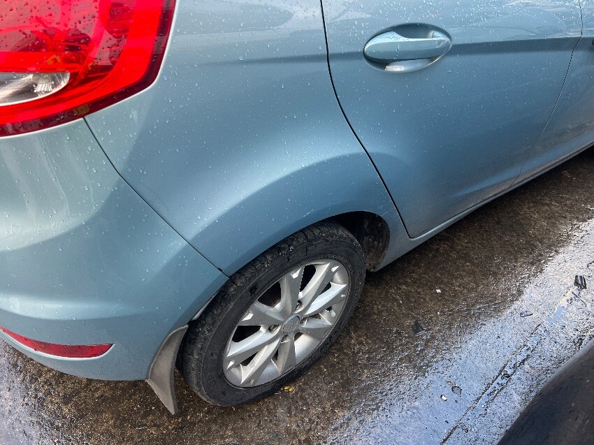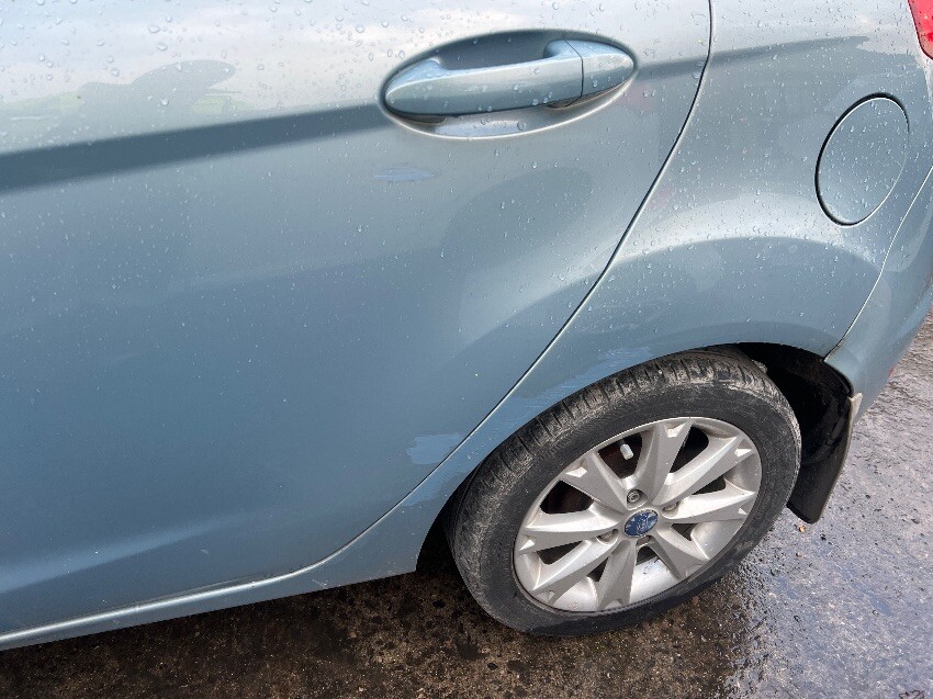 Nearside rear passenger door, nearside rear wheel arch, rear bumper, offside rear wheel arch, steering wheel lock not working, offside wing mirror, general wear and tear.