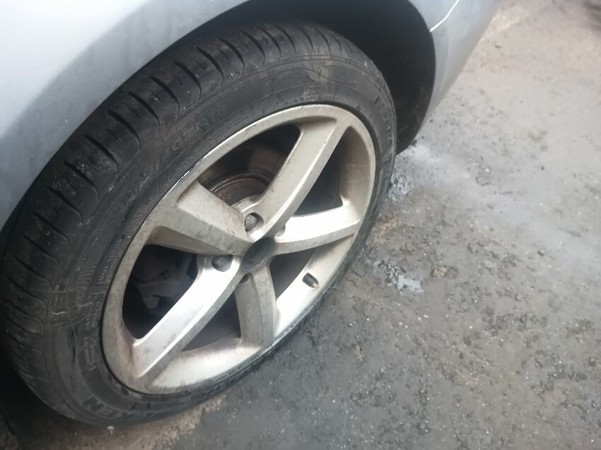 Exhaust is smoking, hatch is blistering from rust, drivers rear quarter panel is dented, rear bumper is damaged center wheel caps missing front & rear, drivers side wing mirror is loose, general wear & tear