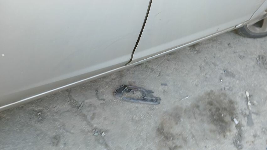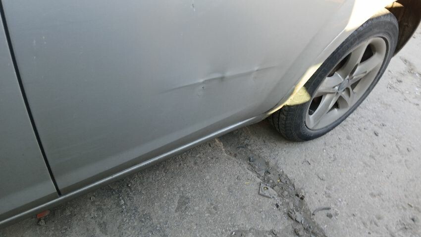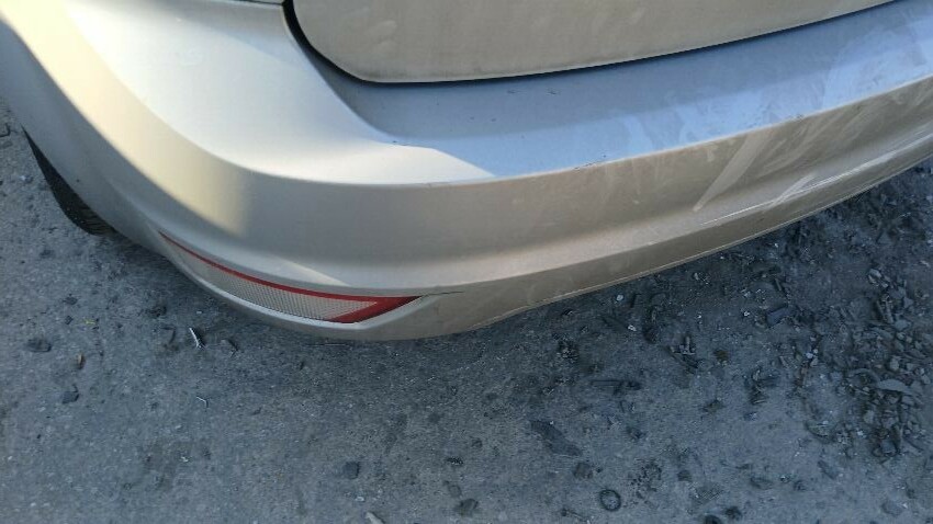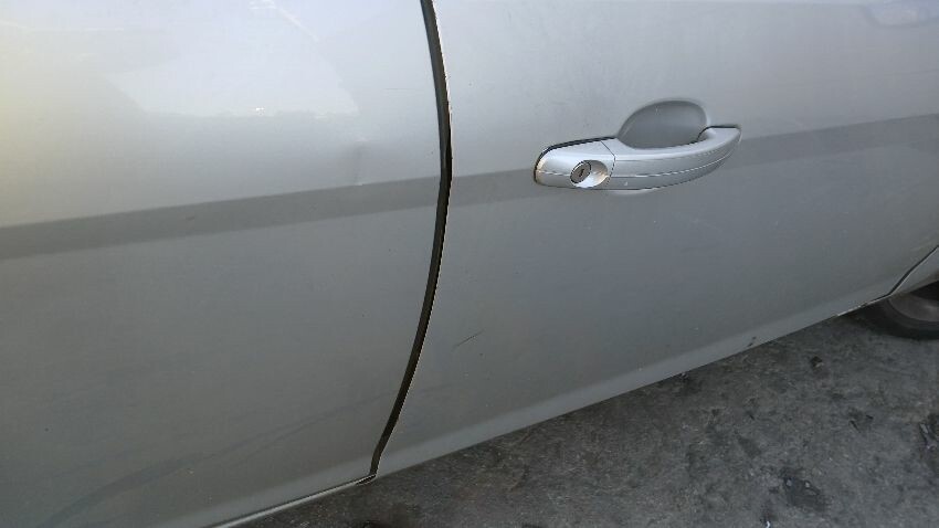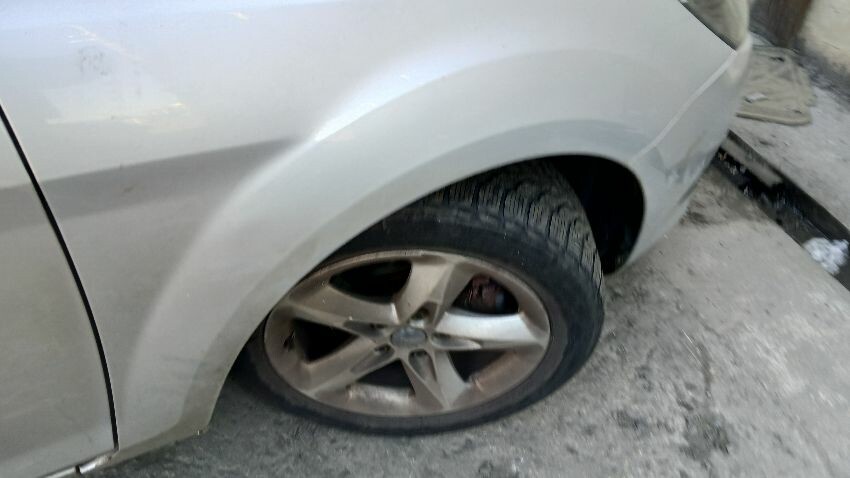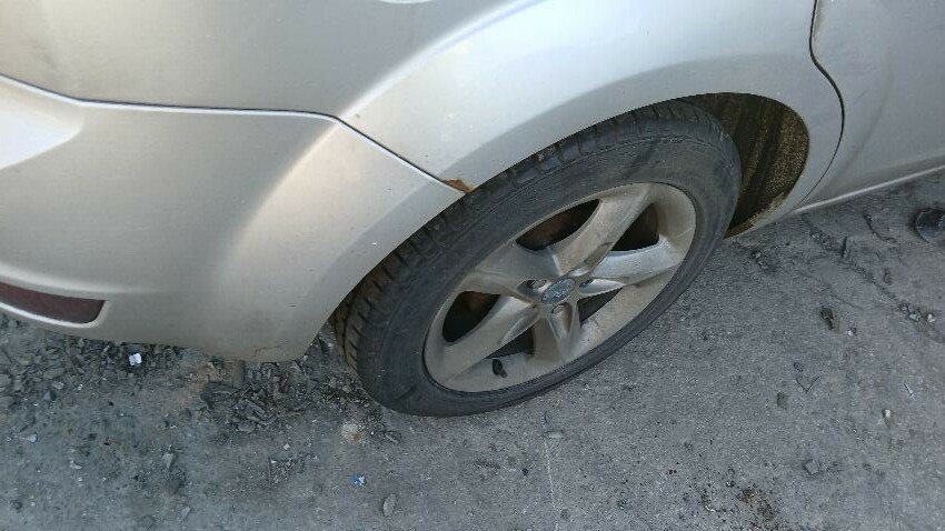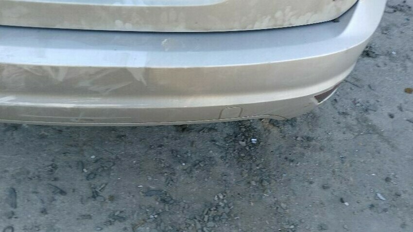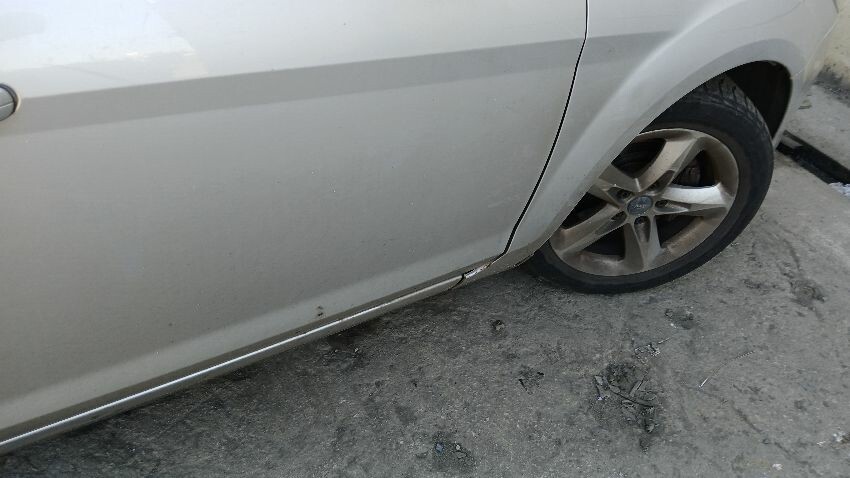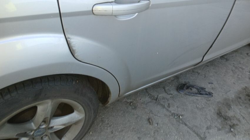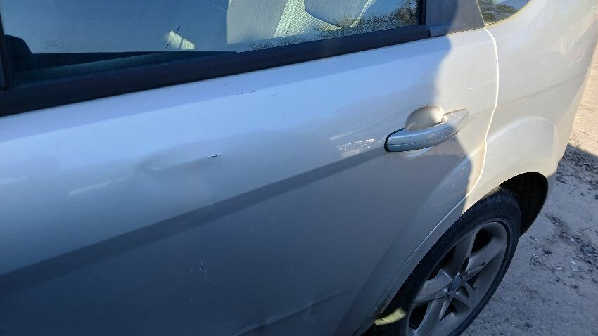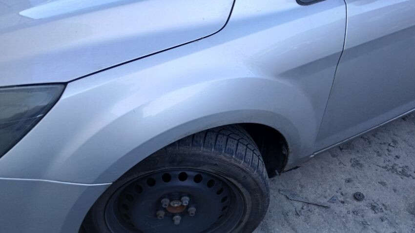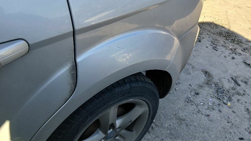 Front bumper, front grill, bonnet lock broken, bonnet, n/s front wing, n/s rear door, /ns rear quarter, rear bumper, boot lid, o/s rear quarter, o/s rear door, o/s front wing, scuffs and scratches all over, general wear and tear for age and mileage, exhaust blowing