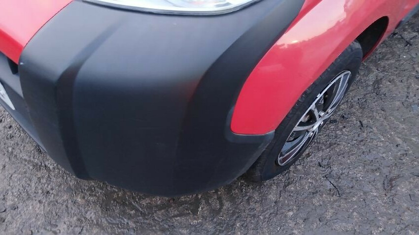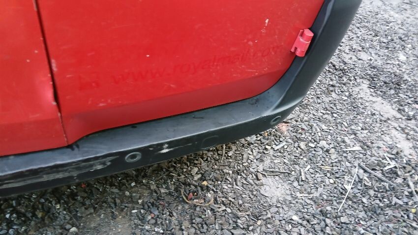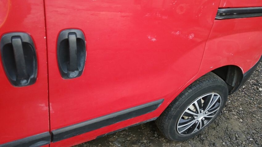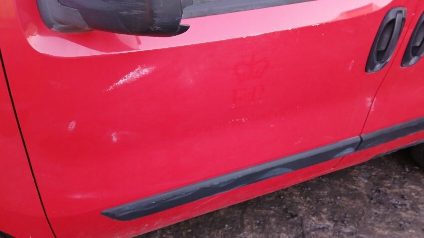 Front bumper, n/s front door, n/s wing mirror, n/s sliding door, n/s rear quarter, rear bumper, both rear doors, o/s rear quarter, o/s body panel, o/s door, o/s front wing, scuffs and scratches all over, general wear and tear for age