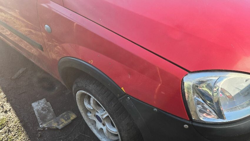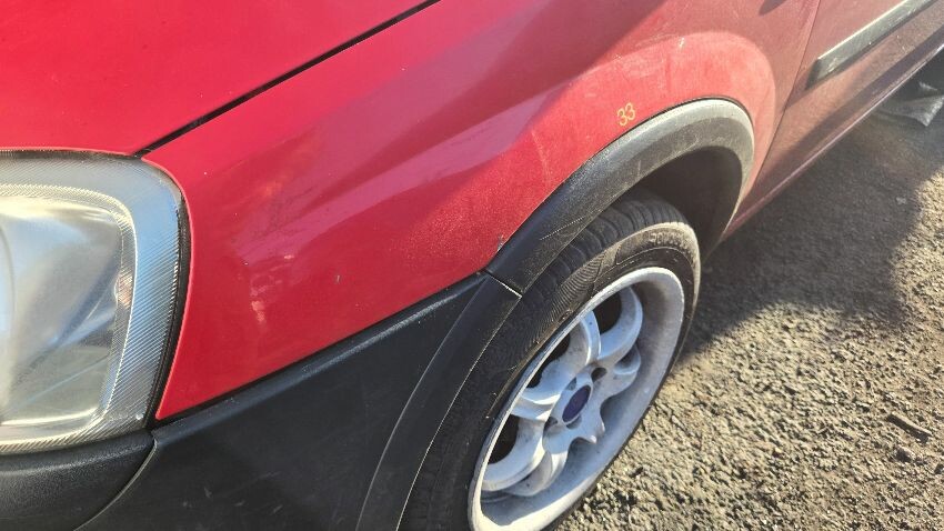 N/s/f wing damaged, bonnet dented, front bumper riveted on, o/s/f wing damaged, rear bumper damaged, o/s panels dented and scratched, ns/r panel damaged, paint faded throughout body work, bonnet doesn't release, general wear and tear,