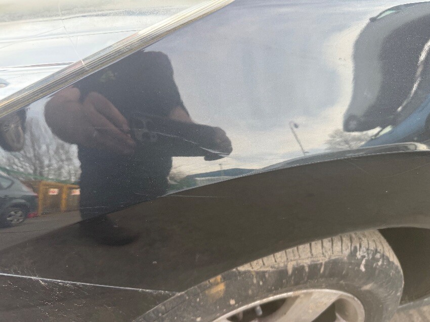 Rear bumper, os quarter panel, osr door, osf door, front bumper, nsf wing, ns mirror, nsf door, nsr door, general wear and tear.