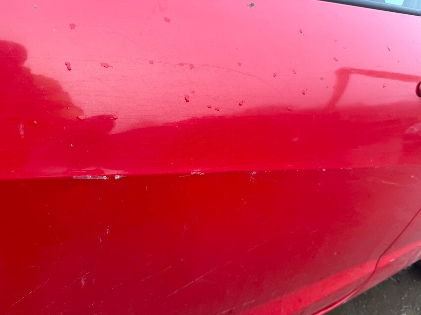 Rear bumper, o/s quarter panel, o/s/front door, o/s mirror, o/s/front tyre, front bumper, n/s wing, n/s/front door, n/s mirror, n/s quarter panel, general wear and tear.