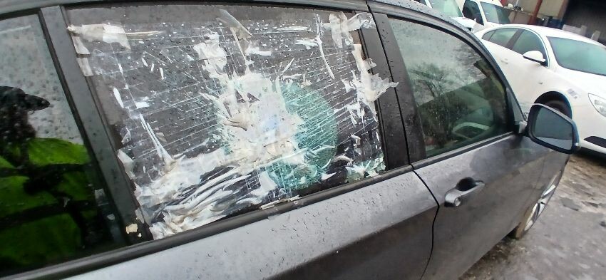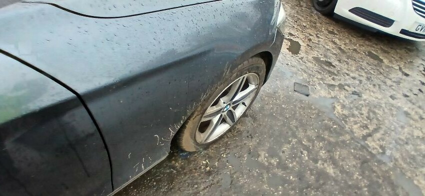 Front bumper, n/s wing mirror, n/s front door, n/s rear quarter, rear bumper o/s rear window smashed, scuffs and scratches all over, general wear and tear for age and mileage, runs rough, engine knocking