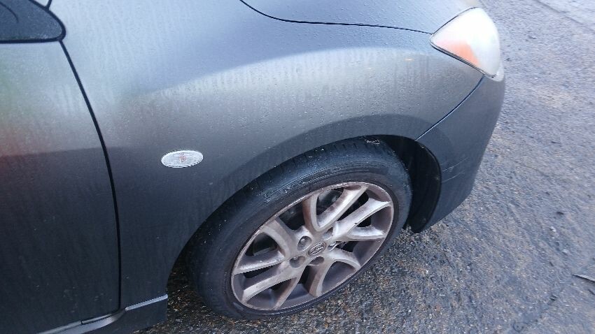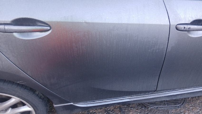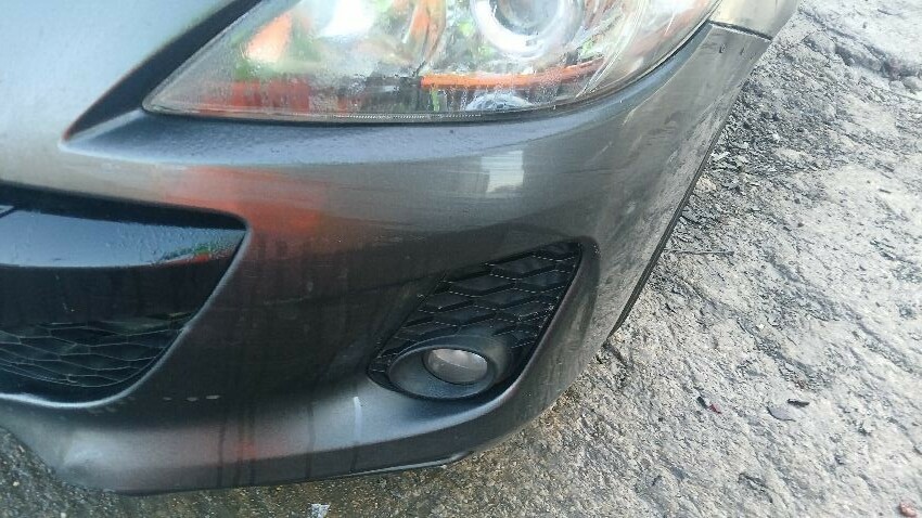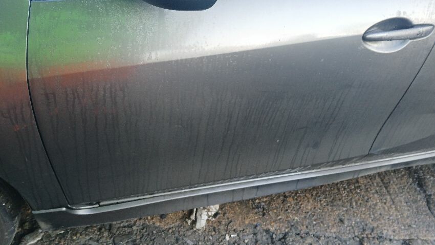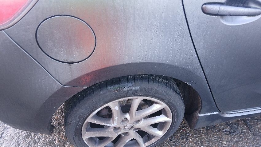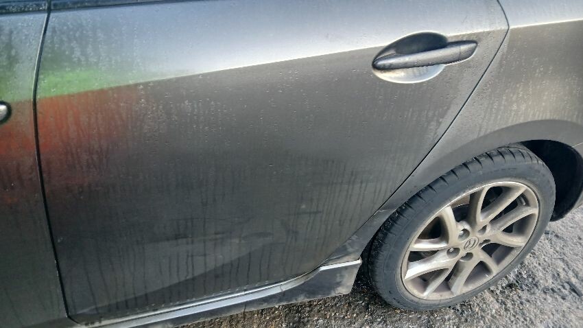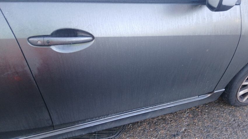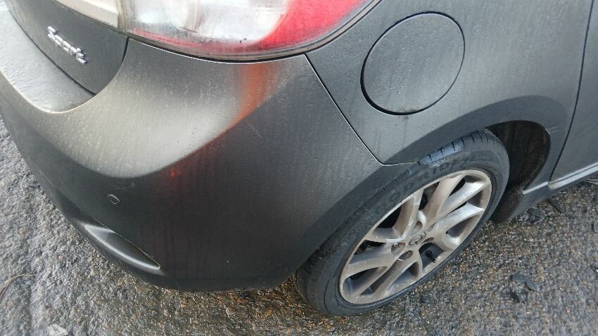 Front bumper, bonnet, n/s wing mirror, n/s rear door, n/s rear quarter, rear bumper, o/s rear quarter, o/s wing mirror, o/s front wing, scuffs and scratches all over, general wear and tear for age, only key blade no key fob
