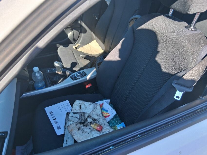Deadlocked. front bumper, n/s/s tyre flat, n/s/f door glass smashed, rear bumper. general wear and tear/ scratches