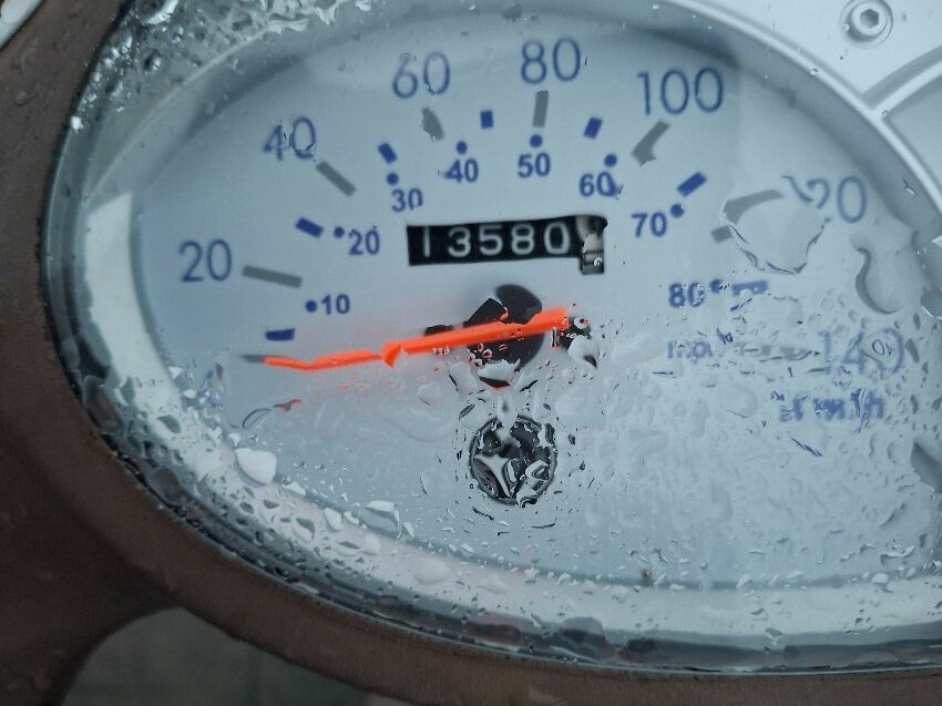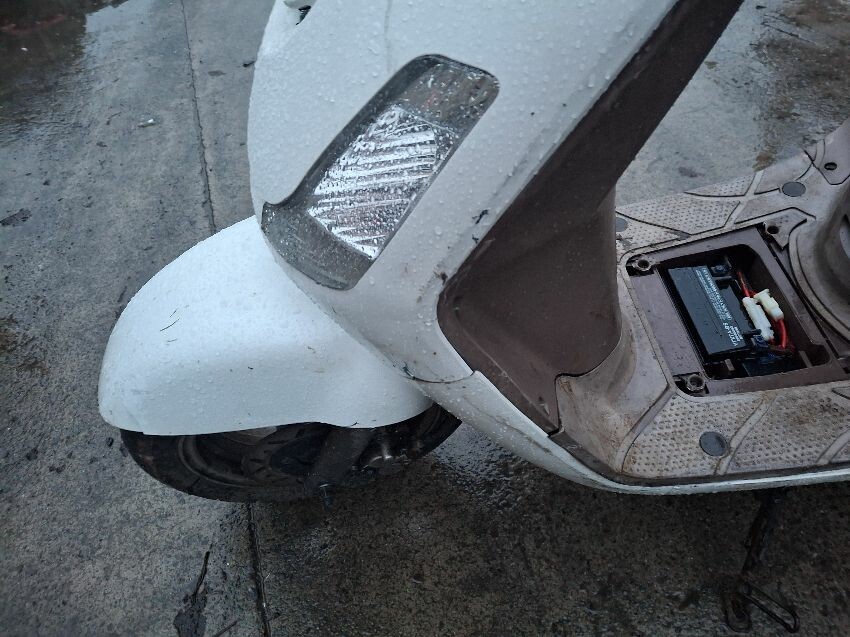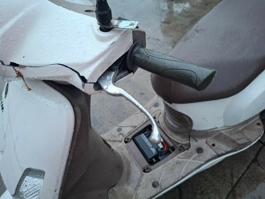 Wear and tear. trim missing. mirror, seat and handlebars damage. major and minor scratches, dents, cracks and paint damage to the vehicle.