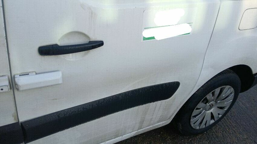 Front bumper, front windscreen cracked, n/s front wing, n/s front door, n/s sliding door, rear bumper, both rear doors, o/s rear quarter, o/s body panels, o/s door, o/s front wing, scuffs and scratches all over, general wear and tear for age and mileage, engine management light on, engine knocking, possible clutch fault, interior soiled