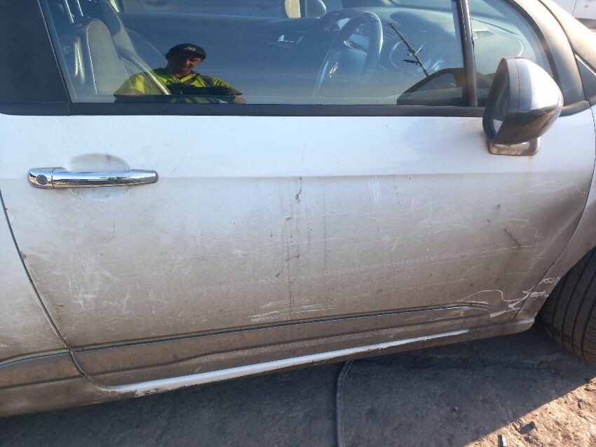 Windscreen cracked, crash damage to passenger side front wing. front bumper, ns and os front wing, bonnet, ns and os mirrors, ns and os doors, ns and os rear quarters, boot, rear bumper. scuffs and scratches all over, vehicle has age and mileage related wear and tear.