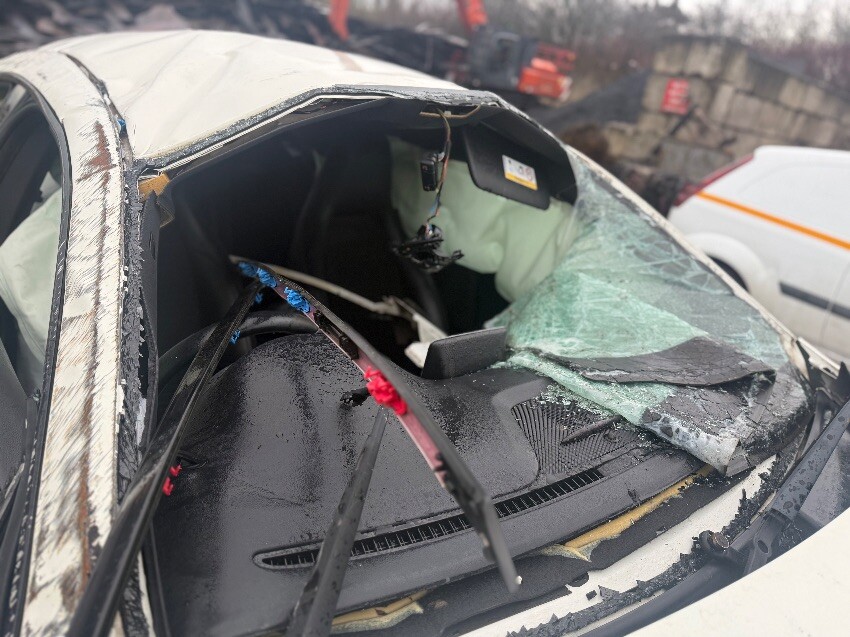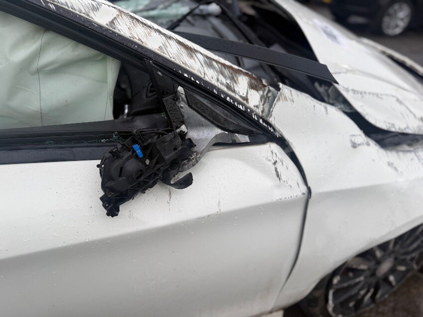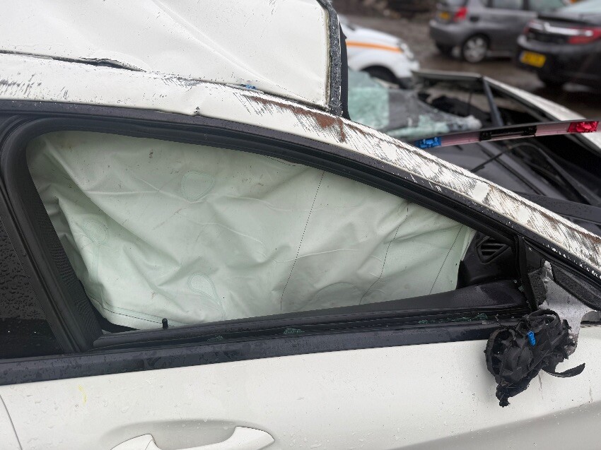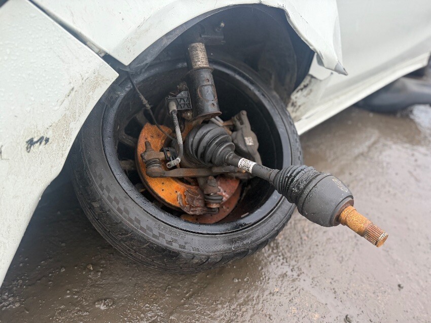 Starts up but cuts out, rear bumper, boot, rear windscreen, roof, o/s quarter panel, o/s/r door, a pillar, airbags deployed, o/s/r window, o/s/f window, windscreen, o/s/f door, o/s wing, bonnet, front bumper, o/s/f light, grill, n/s/f light, n/s wing, n/s/f suspension, n/s/f driveshaft, n/s/f door, n/s/r door, n/s quarter panel, n/s/r lights, o/s/r lights.