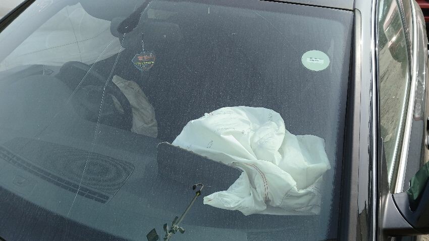 Front bumper, front windscreen, n/s front wing, possible suspension and steering assembly damage to both sides at front, n/s wing mirror, rear bumper, scuffs and scratches all over, general wear and tear for age and mileage, airbags deployed