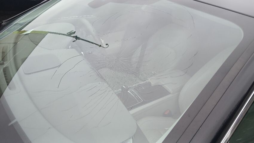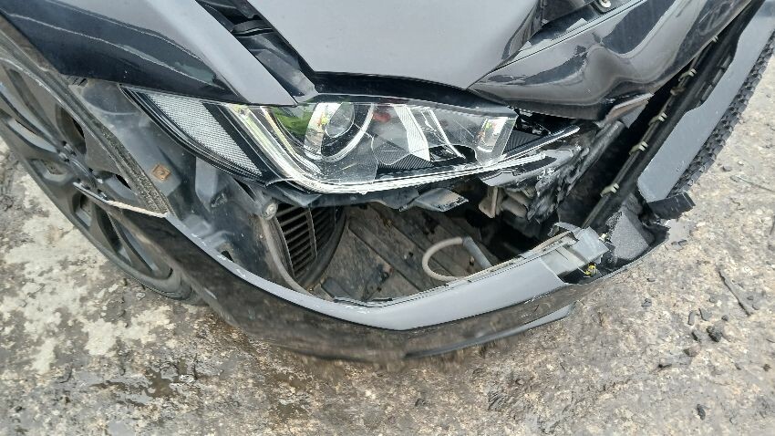 Front bumper, bonnet, bonnet jammed, front windscreen smashed, ns front wing, ns front door, ns rear quarter, rear bumper, os rear quarter, os front door, os wing mirror, os front wing, os front headlight unit, scuffs and scratches all over, general wear and tear for age and mileage, multiple warning lights on dash, airbags deployed