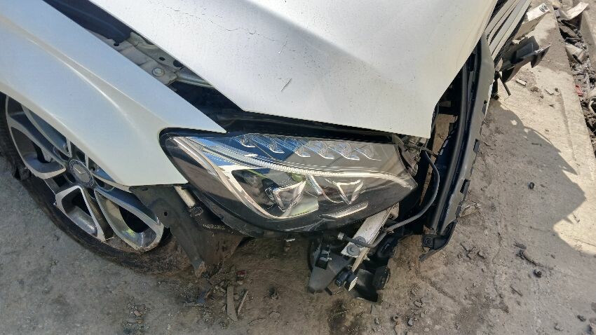 Front bumper missing, ns front headlight unit missing, possible engine damage, possible suspension and steering assembly damage to both sides at front, bonnet, bonnet jammed, front windscreen, ns front wing, ns rear quarter, rear bumper, os rear quarter, possible suspension damage to both sides at rear, os sill, os front wing, os front door doesn't open, airbags deployed, scuffs and scratches all over, general wear and tear for age