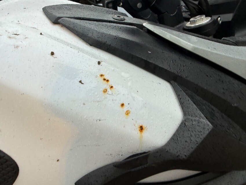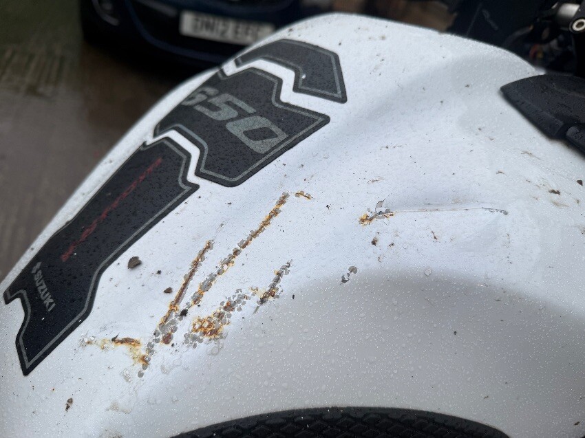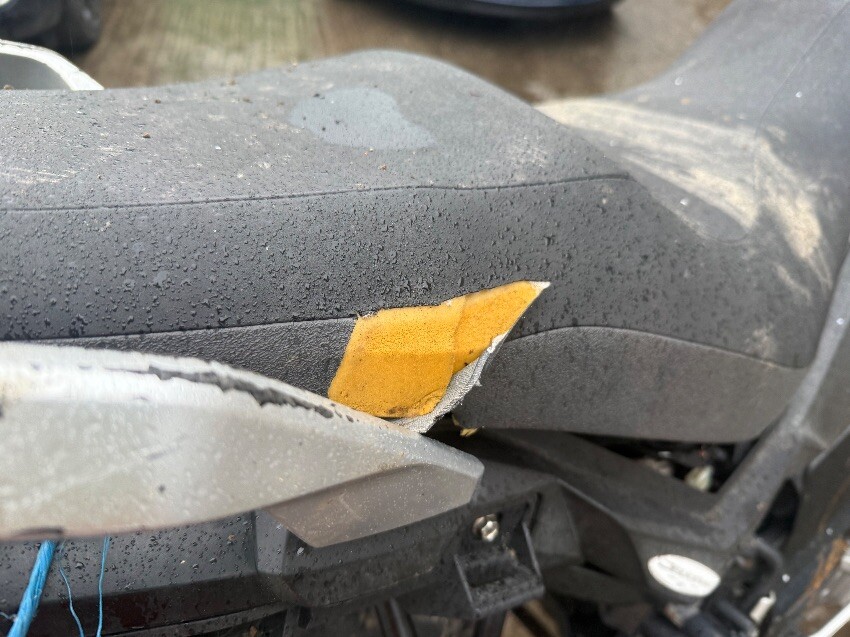 Osr indicator, osr seat, osf plastics, osf brake lever, front mudguard missing, front plastics, nsf plastics, nsr seat, ignition, front screen, general wear and tear.