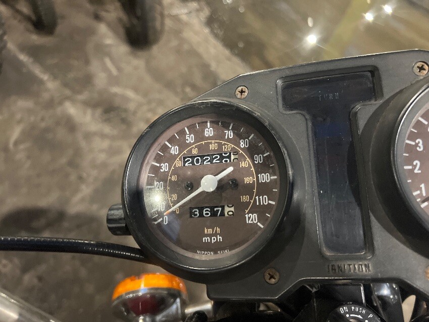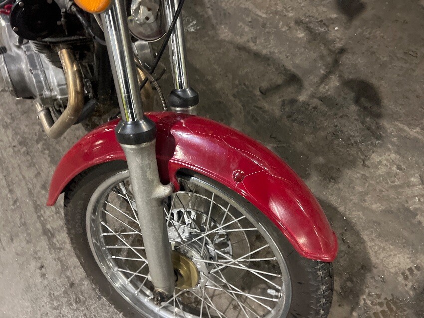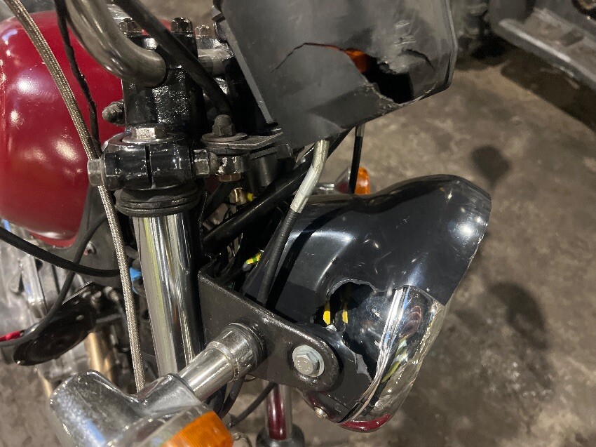 Been painted, scuffs all over, handle bars, indicators, headlight, clocks, brake lever, exhaust, general wear and tear.