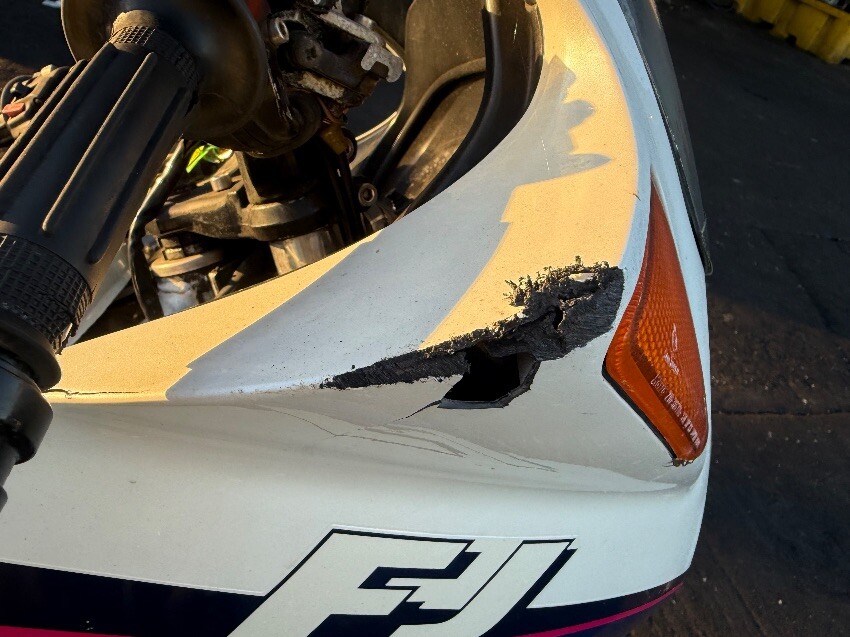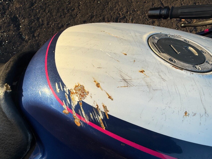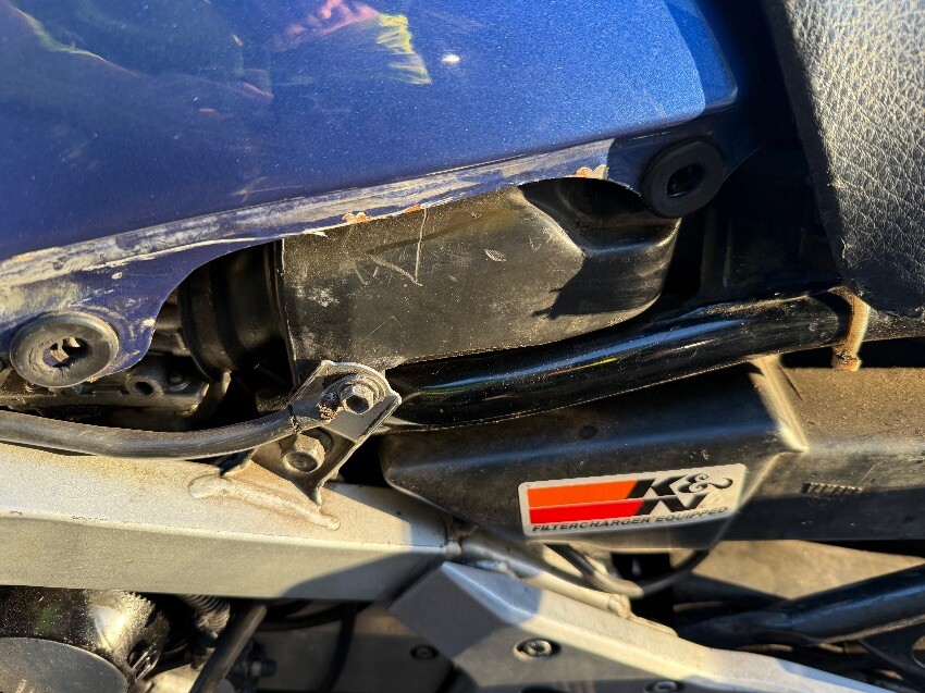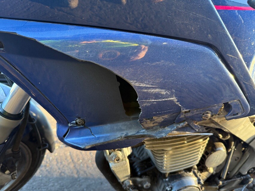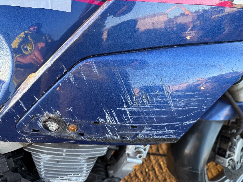 O/s/r indicator, o/s exhaust, o/s stator, o/s engine damage, o/s tank, o/s/f fairing, o/s mirror, n/s/f fairing, n/s/f engine damage, n/s plastic missing, general wear and tear.