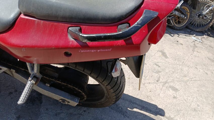 Front mudguard, front fairings, n/s fairings, rear pillion handle, seat, o/s fairings, scuffs and scratches all over, general wear and tear for age and mileage