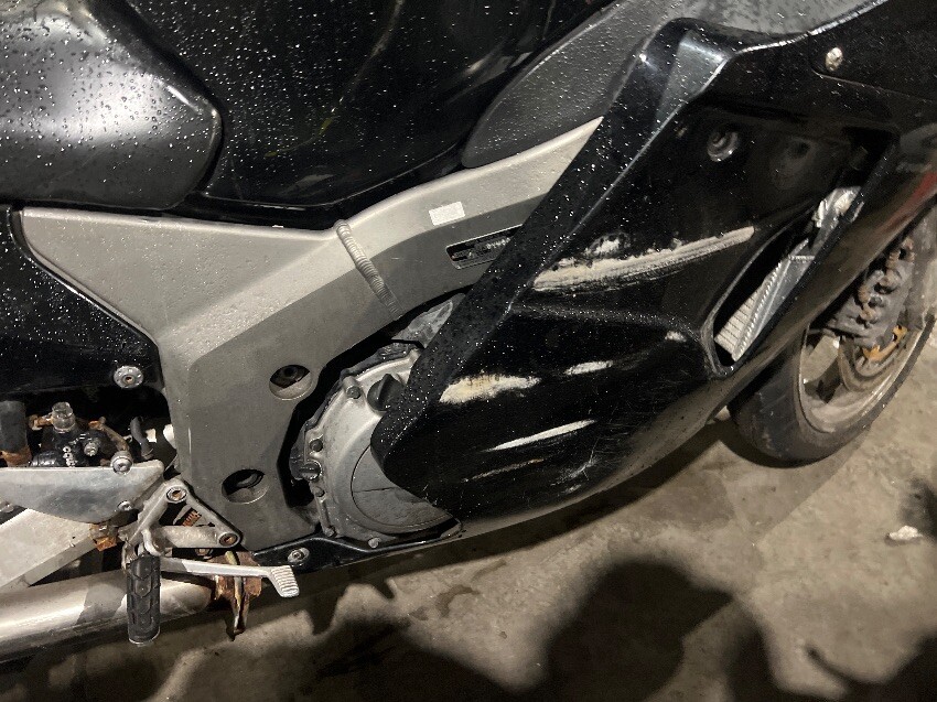 Scuffs all over, front brake, wing mirror, general wear and tear.
