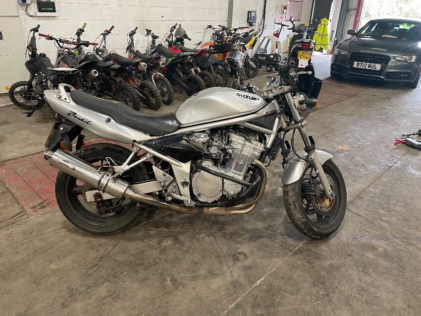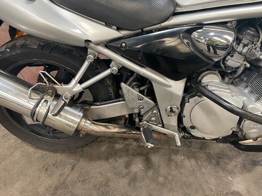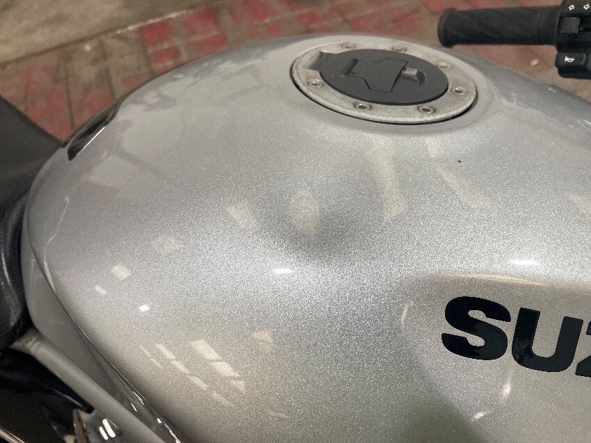Both mirrors missing, clutch handle missing, osr mirror, tank, general wear and tear and scratches