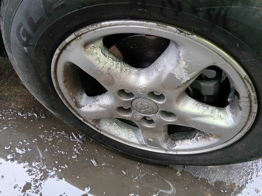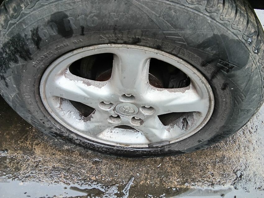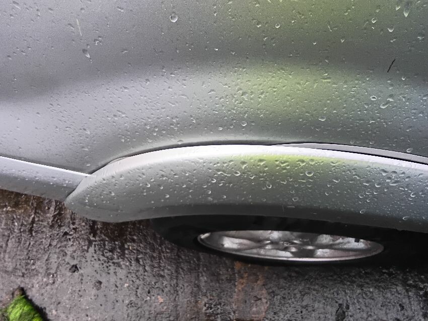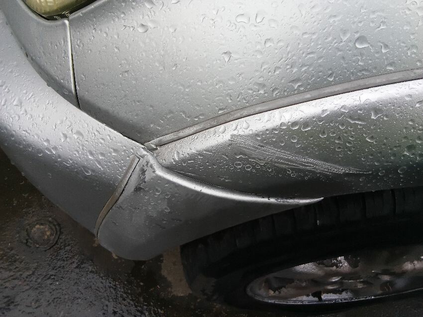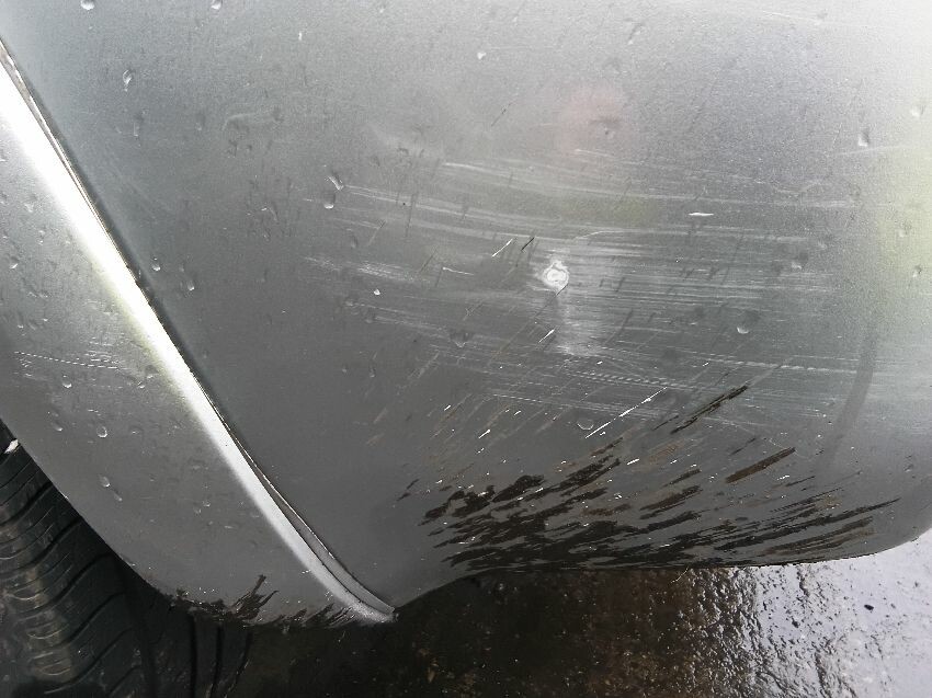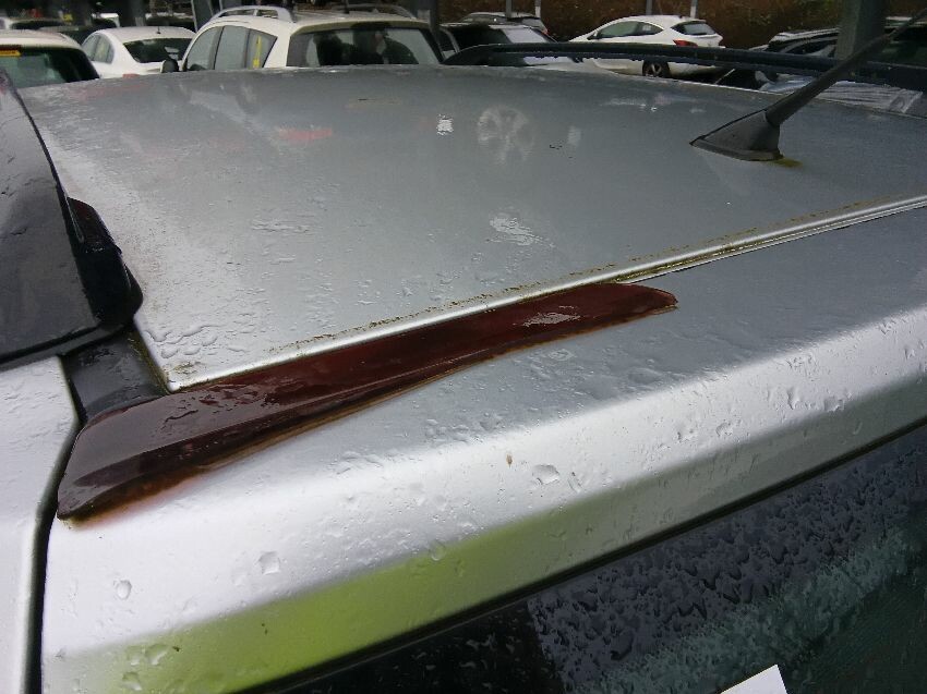 All alloys damaged, front right bumper scratched, front left bumper scratched, rear left bumper and wheel arch scratched, rear right bumper and wheel arch scratched, rear spoiler torn off, roof rack trims coming away from body,