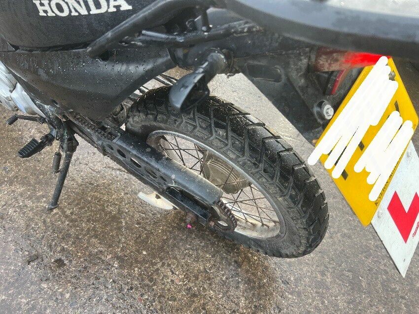 Scuffs all over, frame been welded and painted, indicators, handle bars, general wear and tear.
