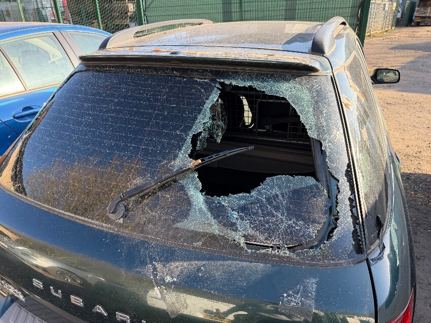 Back window smashed, battery dead, signs of wear and tear throughout.