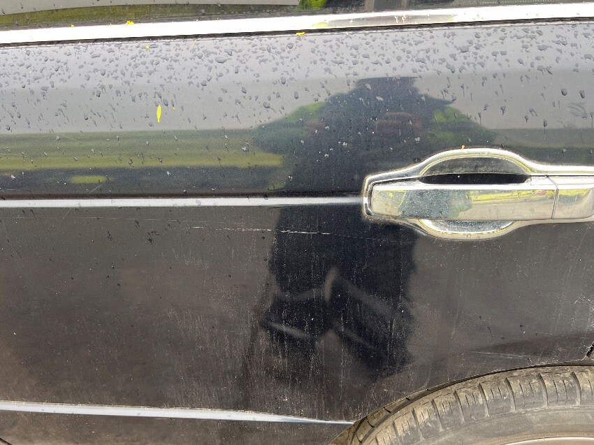 Front bumper, bonnet, nearside front wing, nearside wing mirror, nearside passenger doors, rear bumper, nearside rear wheel arch, offside passenger doors, driver seat interior plastics, general wear and tear.