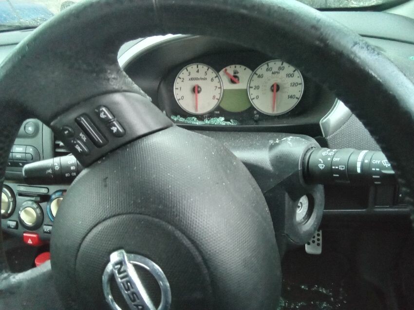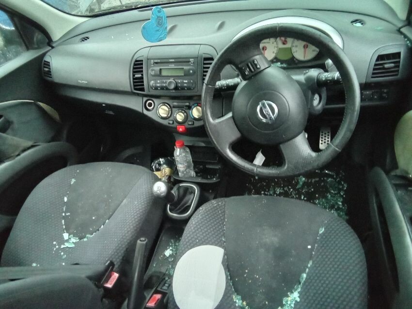Car locked. drivers a d rear window smashed.n/s/r arch bent. both bumpers loose and split.