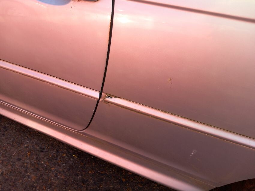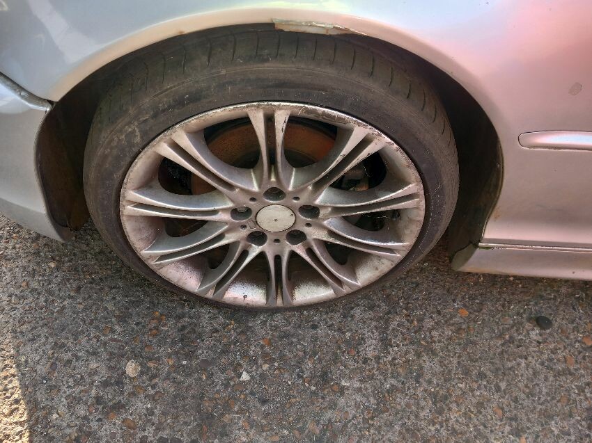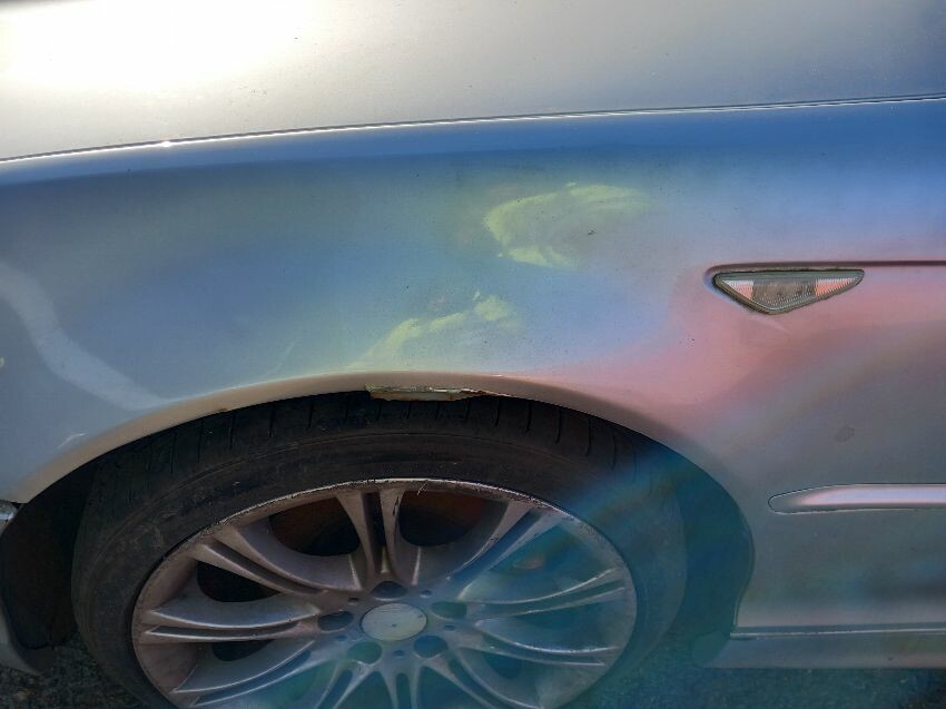 Front bumper, o/s quarter, roof, bootlid, bumper, n/s quarter, n/s tyres, n/s wing, signs of corrosion, age and mileage related wear and tear all over.