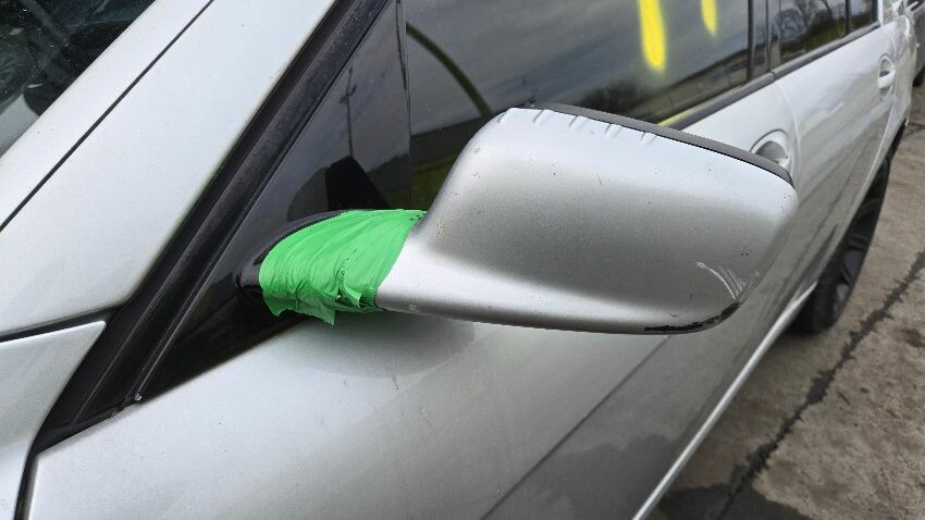 Front bumper damaged, o/s wing mirror paint in poor condition, n/s wing mirror damaged, rear bumper damaged, restraint system light on, bonnet release broken, general wear and tear, engine knocking