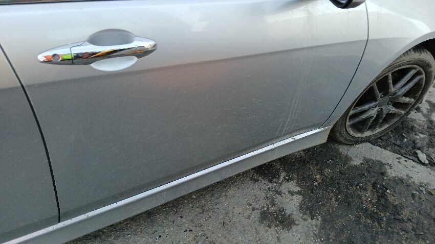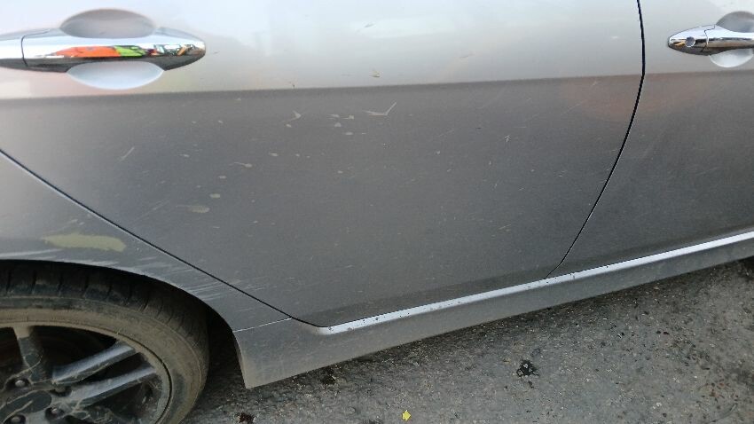 Front bumper, bonnet, n/s wing mirror, n/s front door, n/s rear door, n/s rear quarter, rear bumper, boot lid, o/s rear quarter, o/s front door, o/s wing mirror, o/s front wing, scuffs and scratches all over, general wear and tear for age, areas of rust throughout