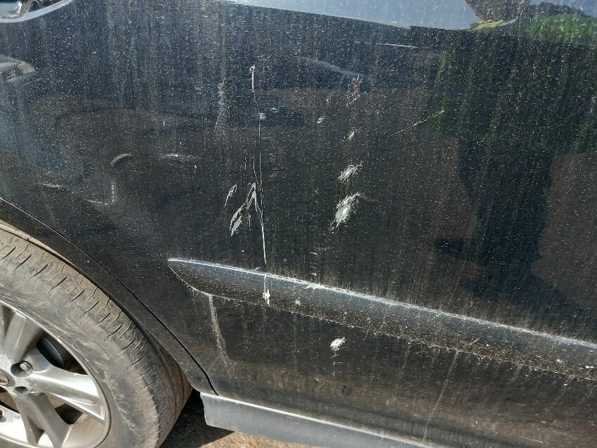 Front bumper, o/s/f tyre, o/s doors, o/s quarter, rear bumper, n/s complete, age and mileage related wear and tear all over.