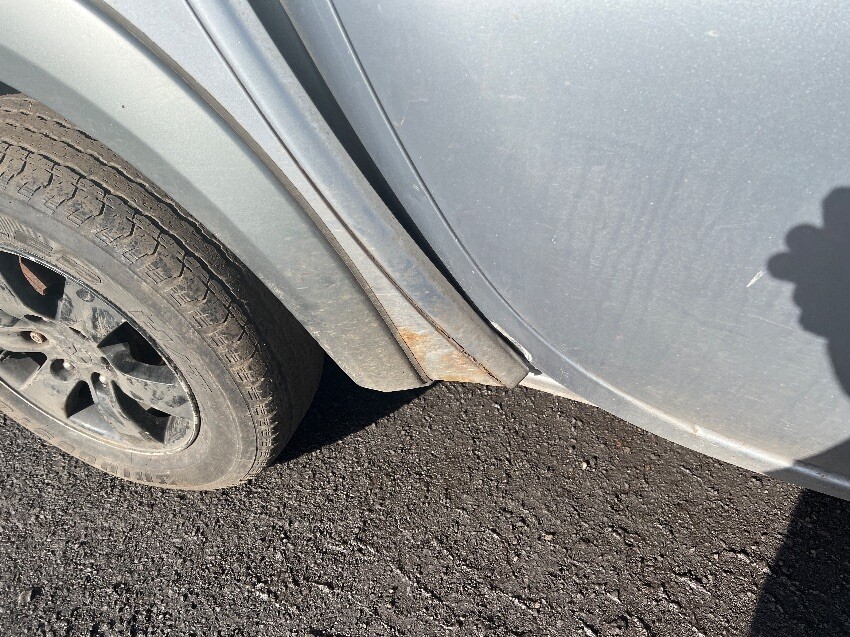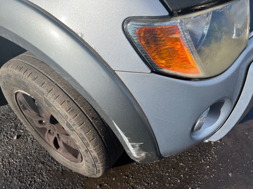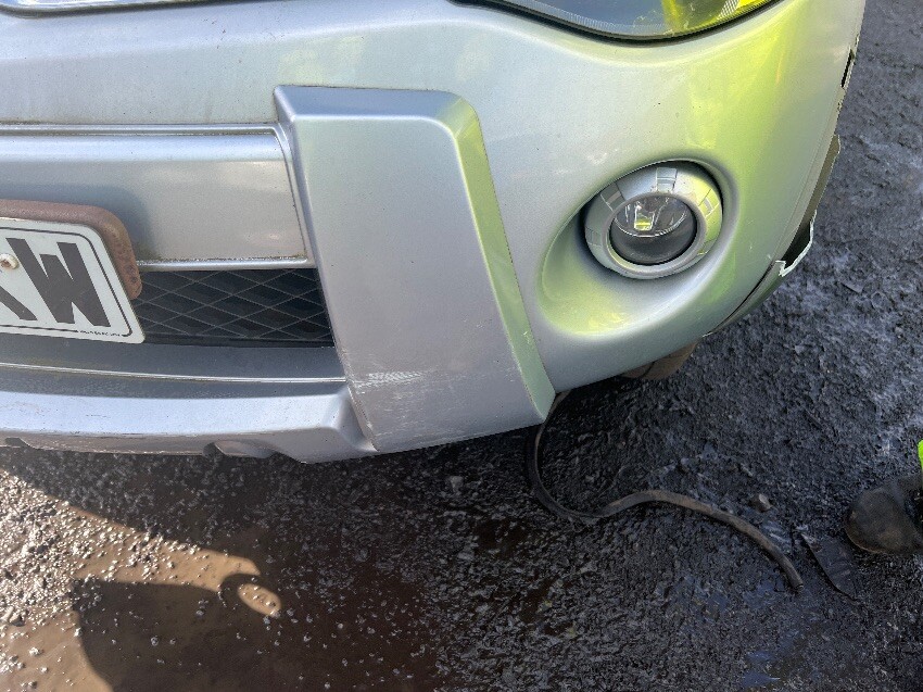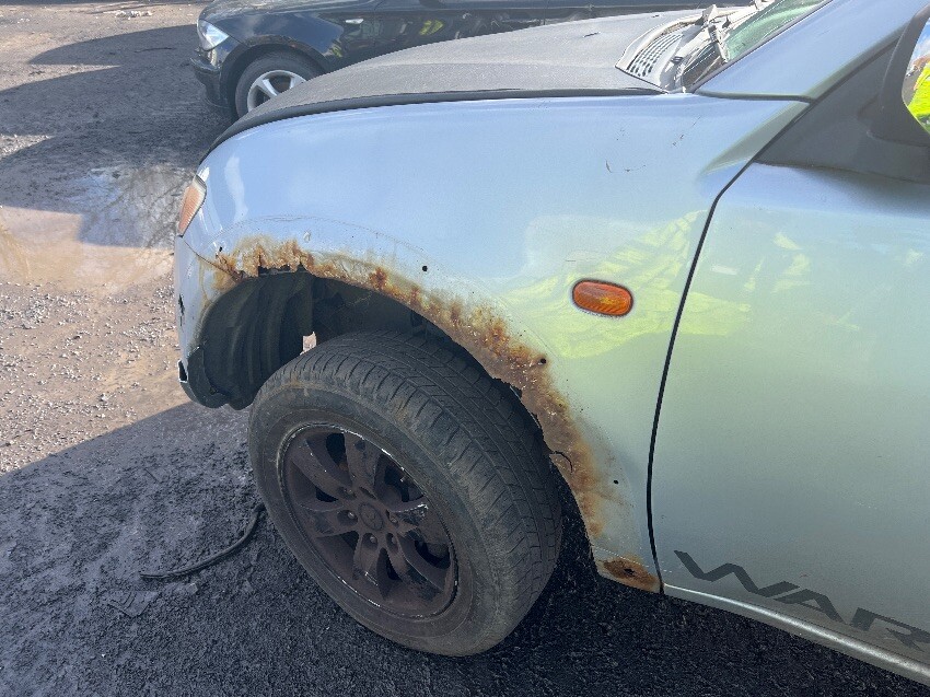 This vehicle is bent in half, rust all around, offside front wing, front bumper, nearside front wing, nearside front passenger door, nearside rear wheel arch, and rear bumper.