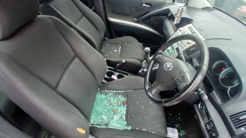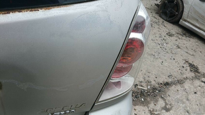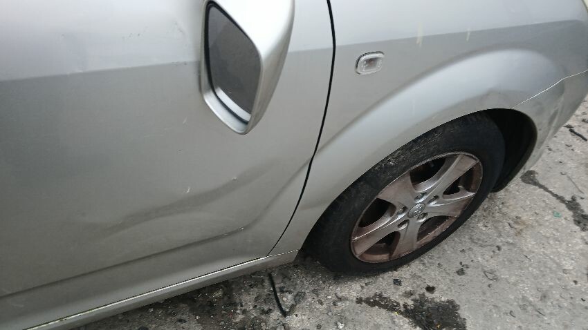 Front bumper, bonnet, bonnet release broken, n/s front wing, n/s wing mirror missing, n/s front door, n/s rear door, rear bumper, boot lid, o/s rear quarter, o/s rear door, o/s front door, o/s wing mirror, o/s front window smashed, scuffs and scratches all over, general wear and tear for age