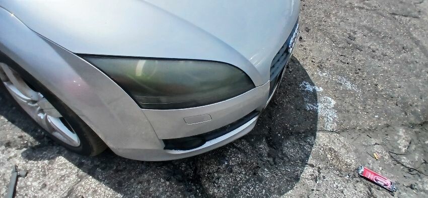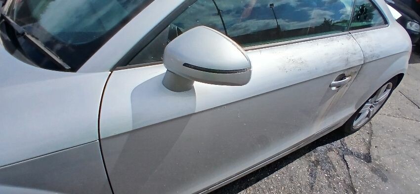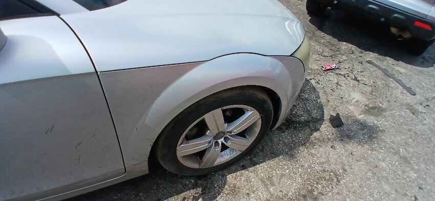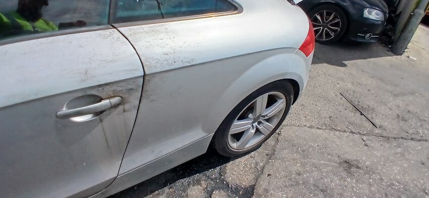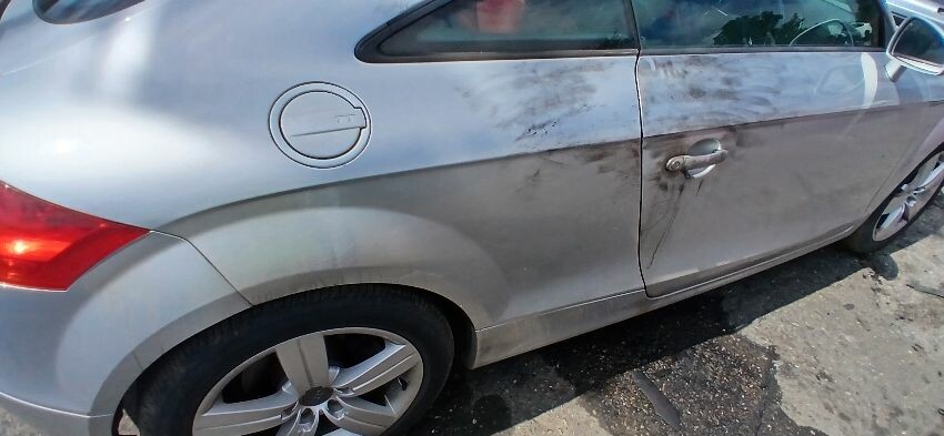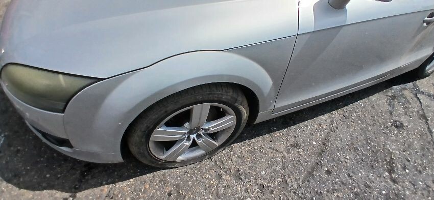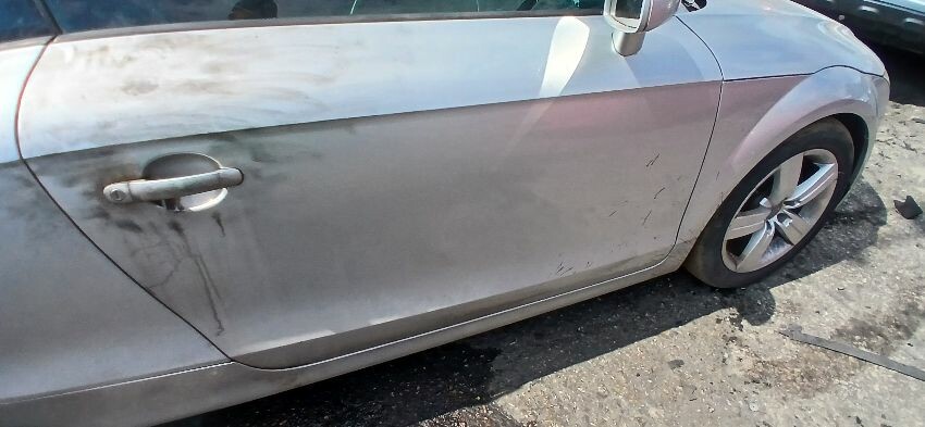 Front bumper, n/s front wing, n/s door, n/s rear quarter, rear bumper, o/s rear quarter, o/s door, o/s wing mirror, scuffs and scratches all over, age and mileage related wear and tear, bonnet release broken