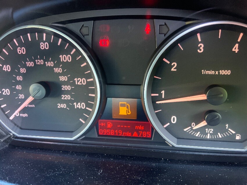 Rear bumper, offside rear wheel arch, driver seat, low on fuel, nearside rear wheel arch, nearside rear wheel arch, nearside front wing, front bumper, bonnet, offside front wing, general wear and tear.