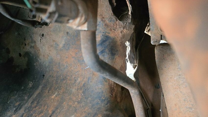 Bed full of rubbish, rusting shell, rear bumper damaged, general wear and tear,