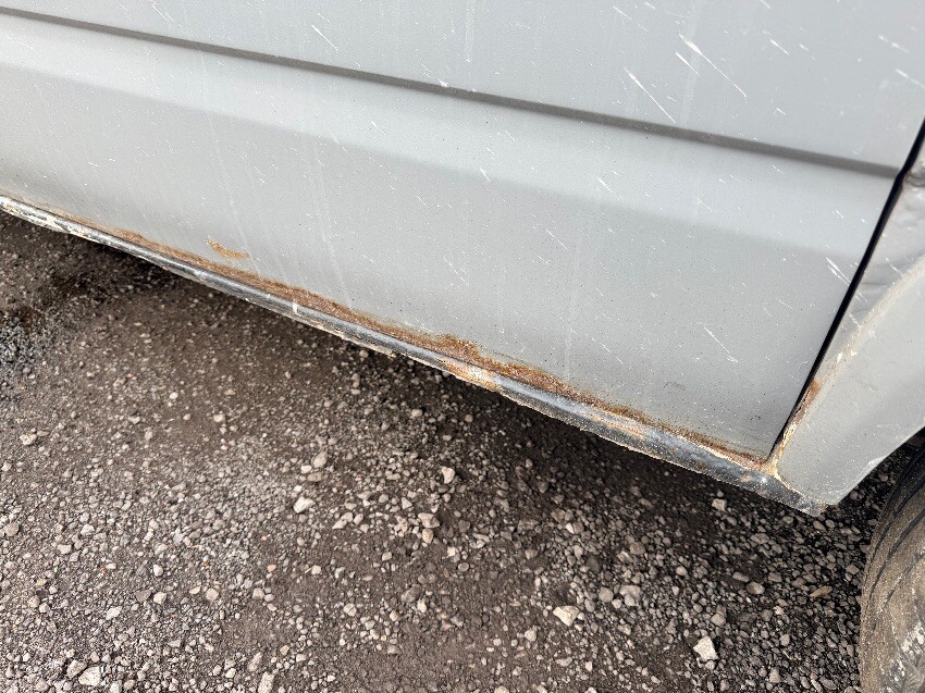 O/s sill and body panels dented and rusted. paint chipped on o/s wing mirror. o/s front wing rusted. scuffs over front bumper. n/s sill and body panels dented and rusted. small dents on rear doors. o/s rear corner rusted and paint chipping off. general wear and tear over vehicle. no key, can’t open bonnet.