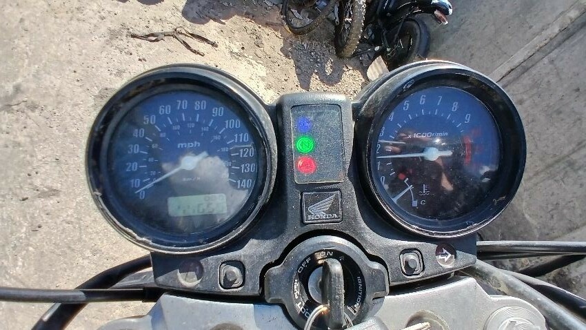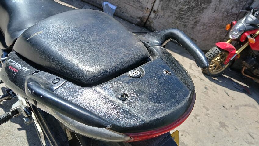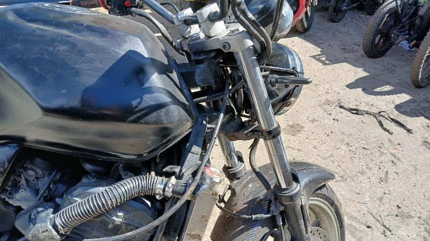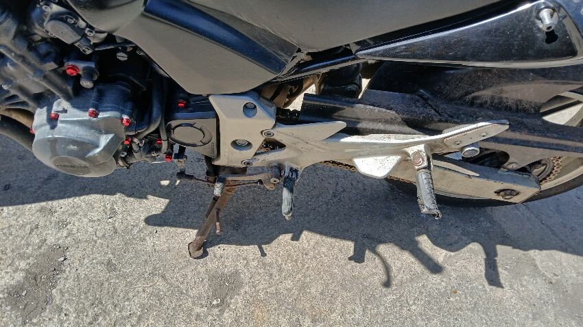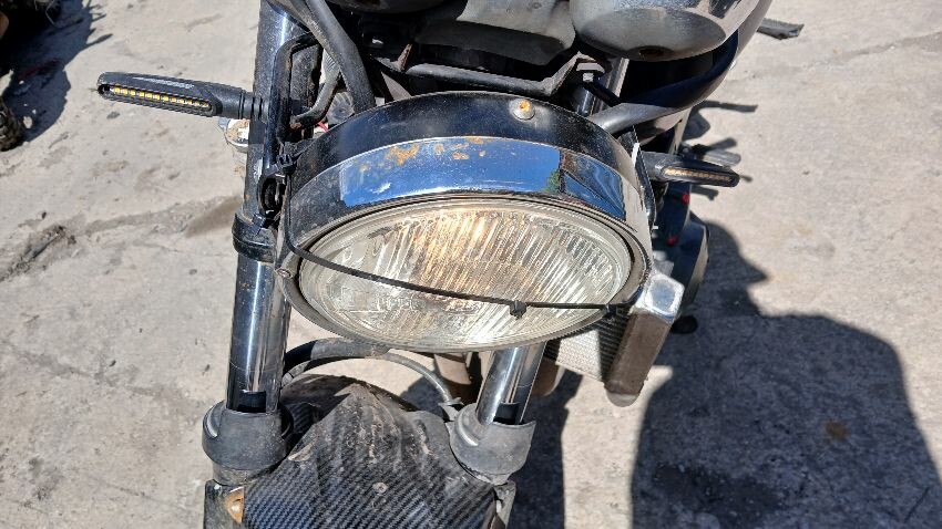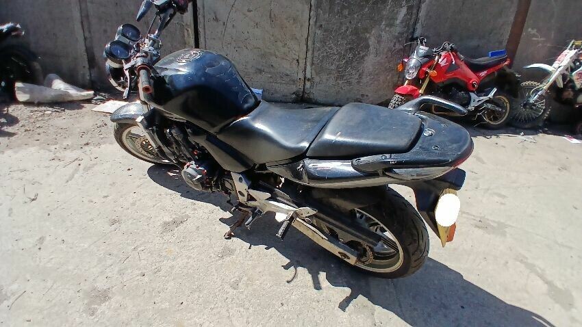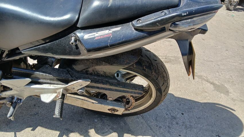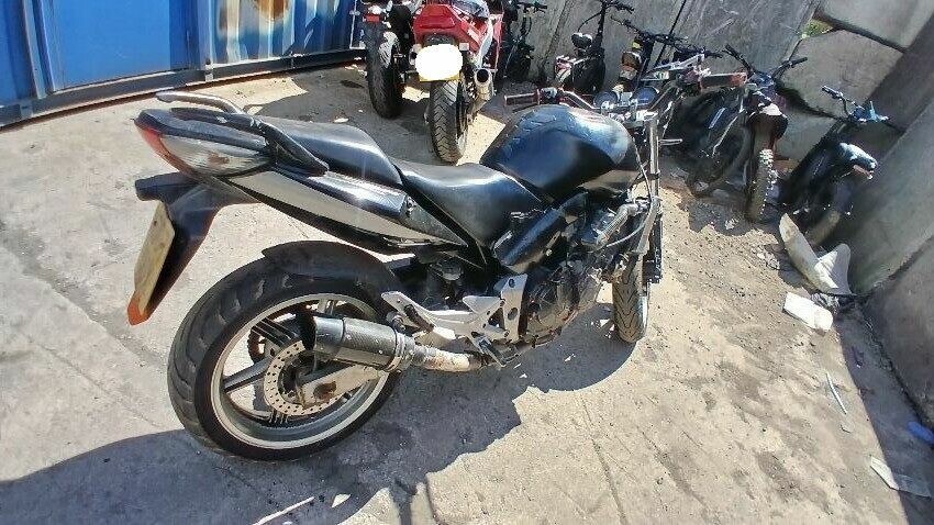 Front mudguard, front headlight unit, handlebars, clocks, n/s fairings, seat, o/s fairings, o/s engine casing, possible radiator leak, scuffs and scratches all over, general wear and tear for age and mileage, foot brake, poor respray