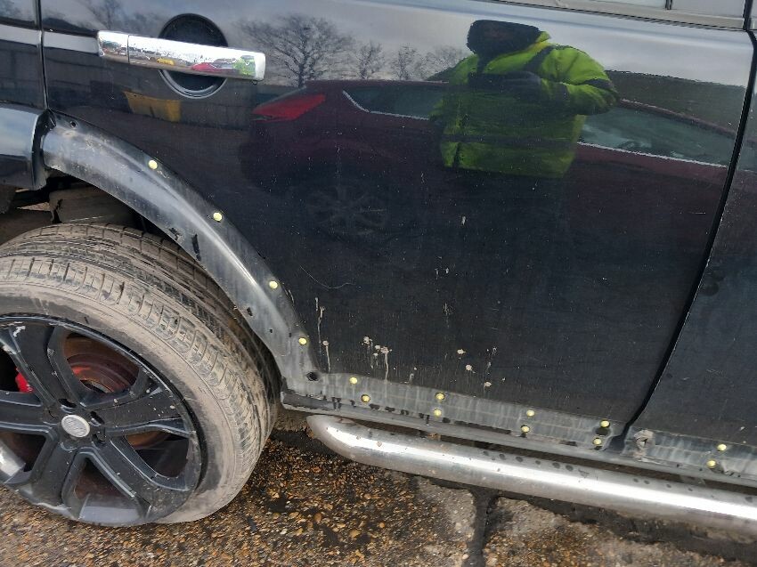 Warning lights on dash, suspension, o/s/r wheel and tyre, front bumper, bonnet, o/s doors, rear bumper, n/s doors, n/s wing, n/s/f wheel and tyre, age and mileage related wear and tear all over.