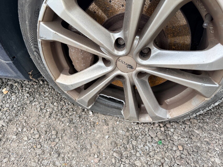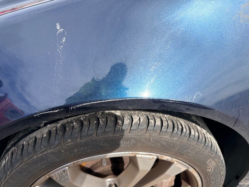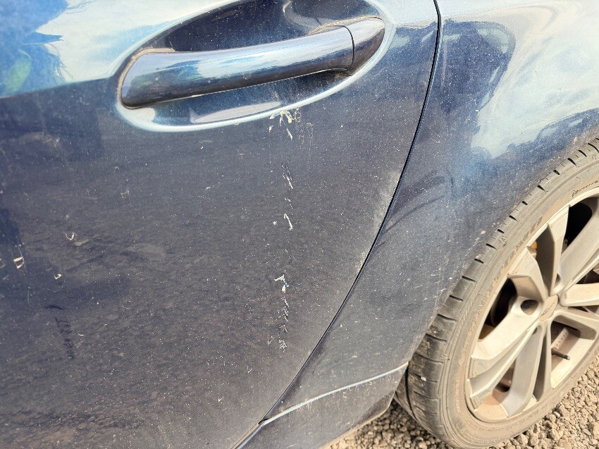 N/s front wheel arch scuffed. scratched and small dents on passenger door. both alloy wheels cracked on o/s. general age related wear and tear over vehicle.