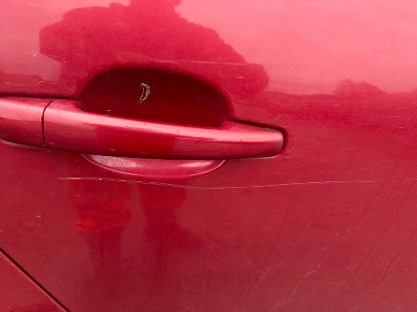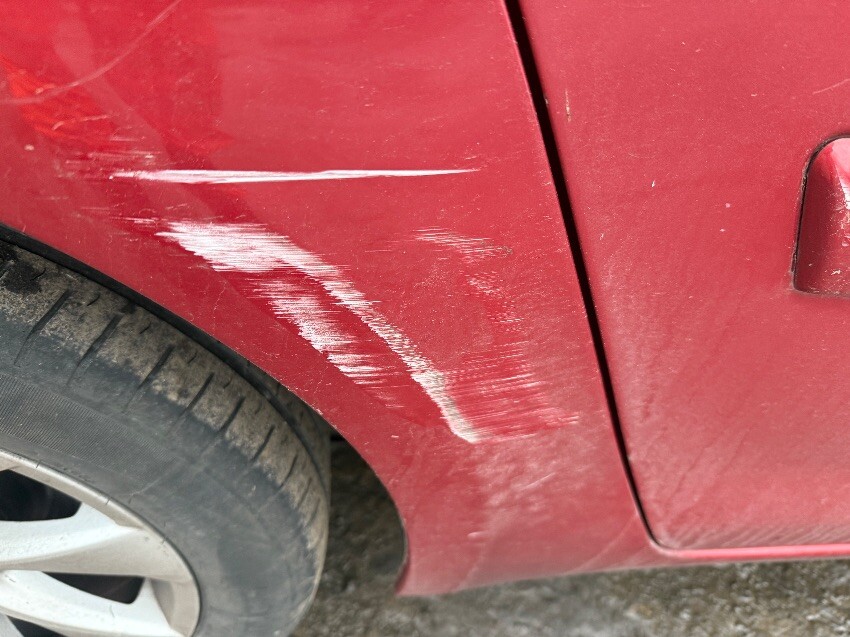 Locked with keys inside, rear bumper, o/s rear wheel arch, o/s rear door, front bumper, n/s rear door, o/s a pillar, general wear and tear.