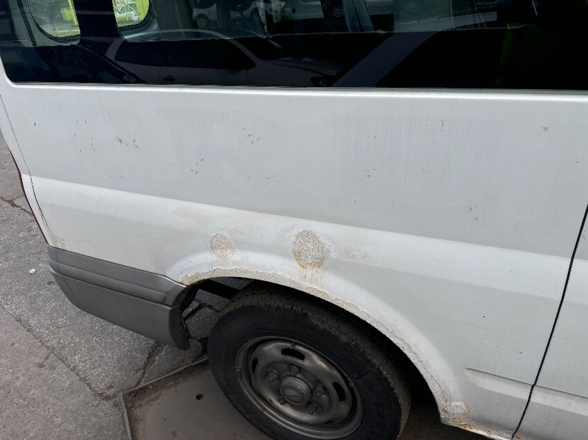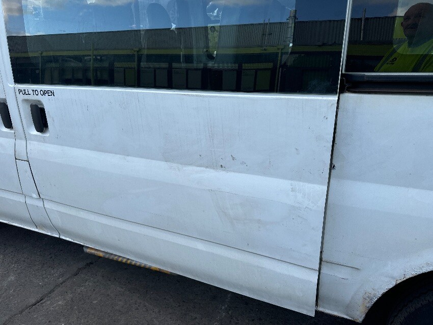Offside front wing, offside mirror, drivers door, offside rear quarter, rear bumper, rear doors, nearside rear quarter, nearside sliding door, passenger door, nearside mirror, nearside front wing, nearside front bumper, bonnet, sliding door does not shut, roof, general wear and tear