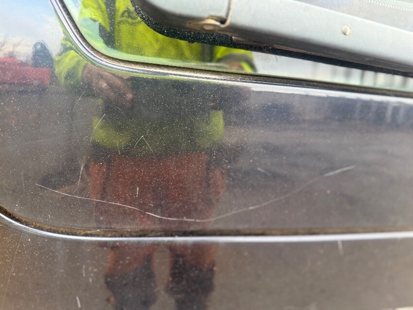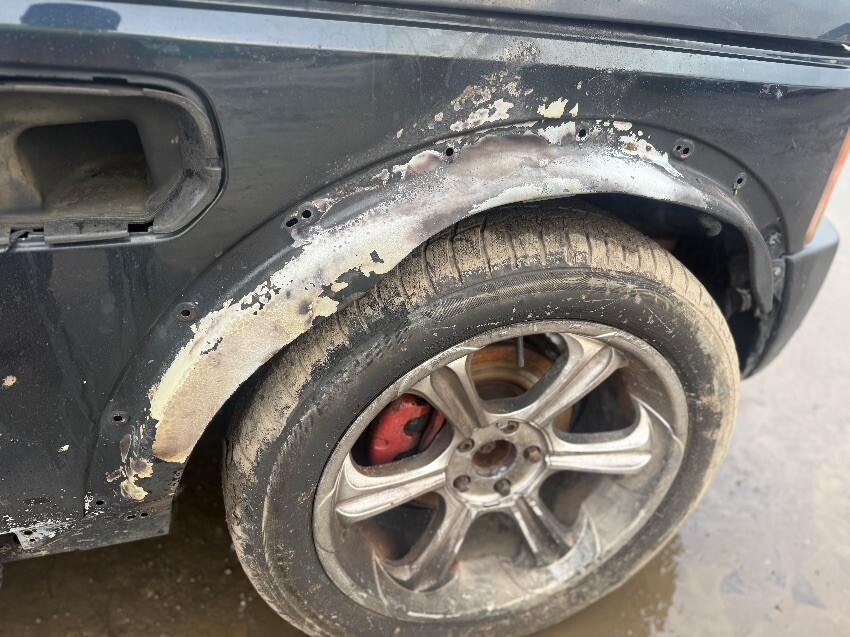 Rear bumper fire damage, boot, o/s/r door, o/s/r window, o/s/f door, o/s/f sill fire damage, o/s wing fire damage, windscreen, n/s wing, n/s/f door, n/s/r door, n/s quarter panel, general wear and tear.