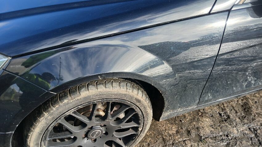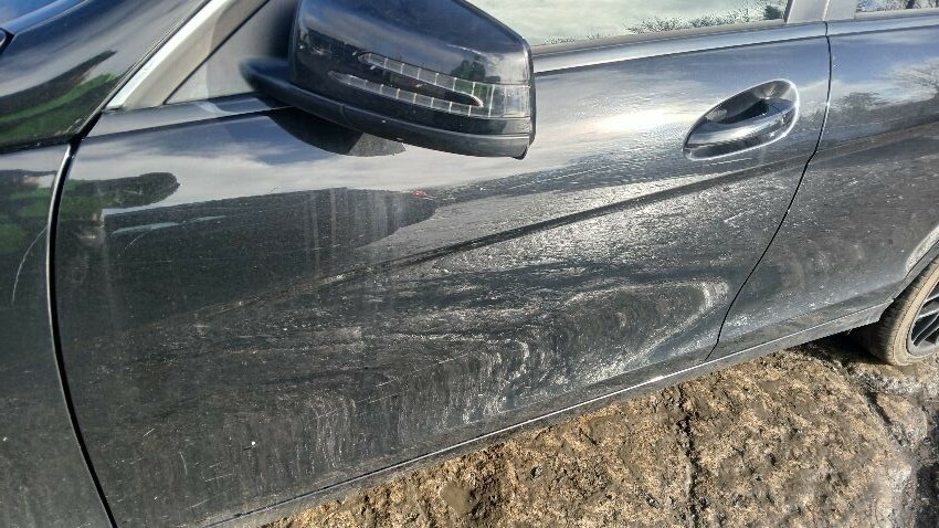 Front bumper, n/s wing mirror, n/s rear quarter, o/s rear quarter, o/s front door, o/s wing mirror, scuffs and scratches all over, general wear and tear for age and mileage, front windscreen chipped