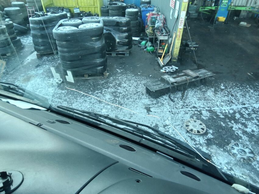 Mileage is in km. flat tyres. windscreen cracked. n/s front indicator missing.