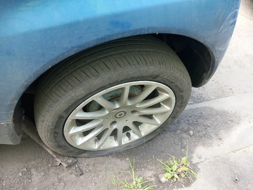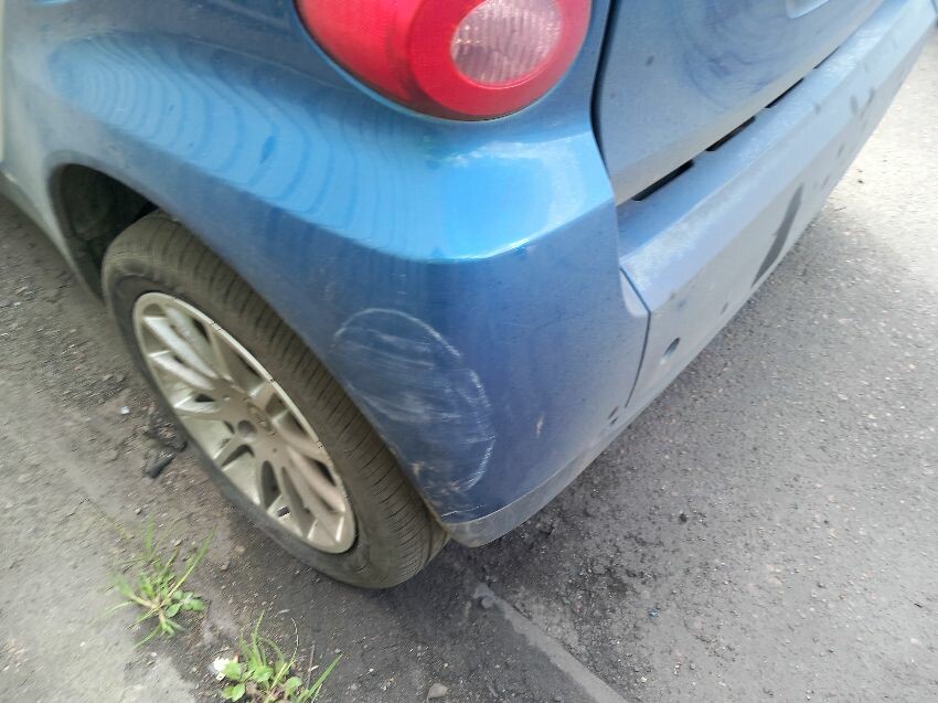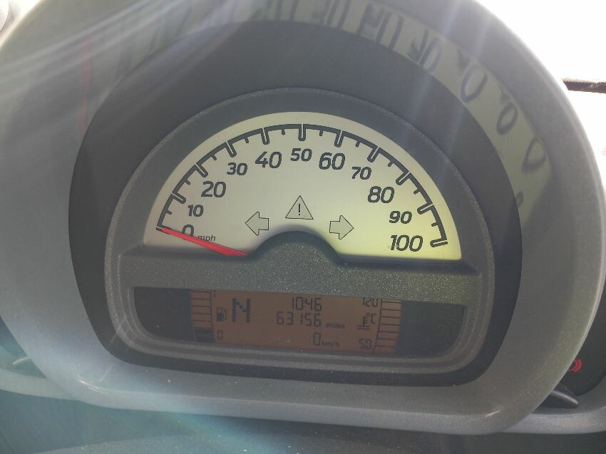 No power steering, o/s/r tyre, windscreen, front bumper, o/s quarter, rear bumper, interior soiled, burn in seat, age and mileage related wear and tear all over.